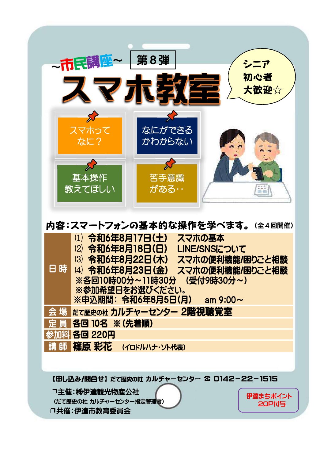 場所 カルチャーセンター 視聴覚室 受講料 各回 220円